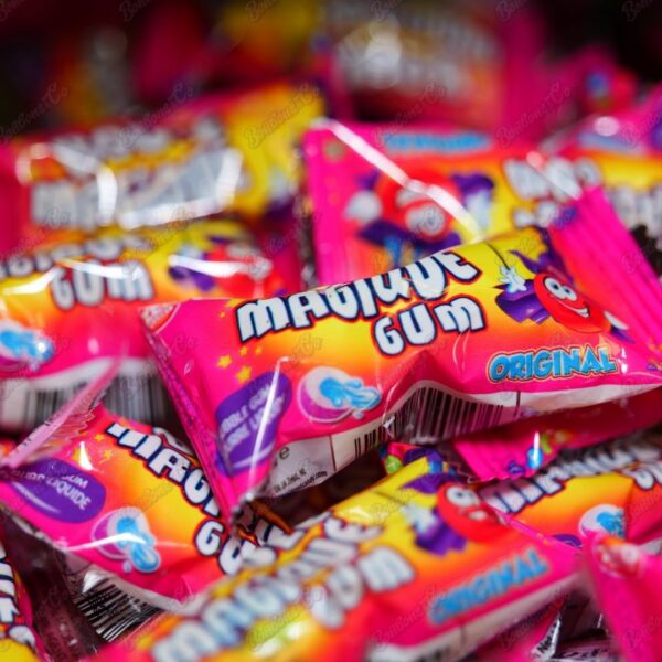 Ingrédients : sucre, dextrose, gomme base, sirop de glucose, humectant : glycérine, acidifiants : acide citrique, arômes, amidon modifier, colorant : E133, concentré de carotte noir, agent d’enrobage E903, antioxydant E321.