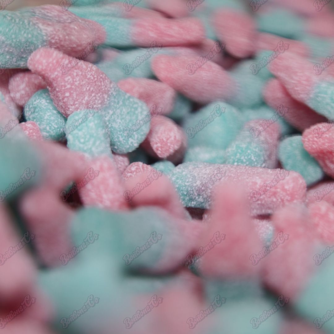 Ingrédients : sucre, sirop de glucose, eau, gélatine, acidifiant : E270, E296, E330, E350, correcteur d’acidité : E500, arôme colorant alimentaire (concentré de spiruline et de pomme), concentré de jus de carotte noire.